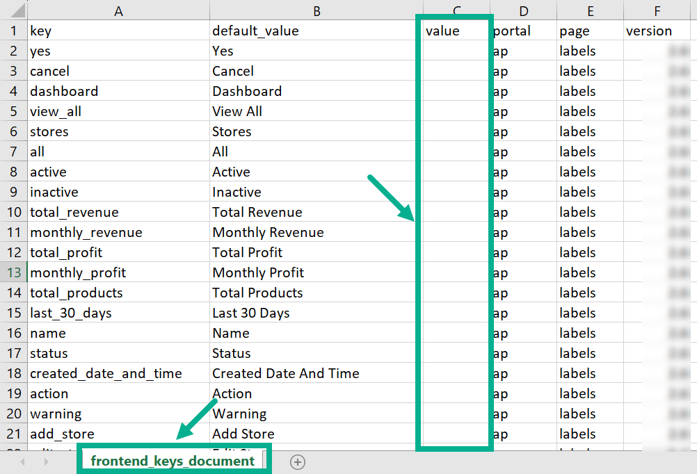 Before uploading, make sure that the Frontend Support Template (frontend_keys_document) and Backend Support Template (backend_keys_document) are in UTF-8 CSV format and contain all translated values.