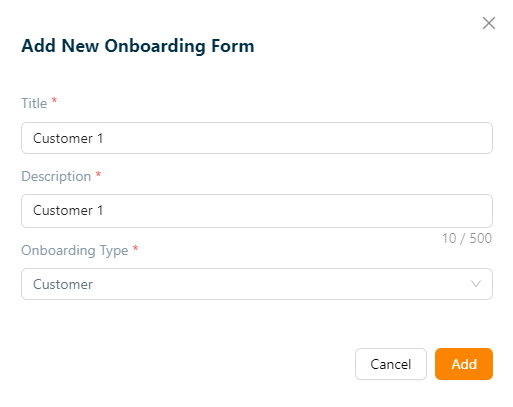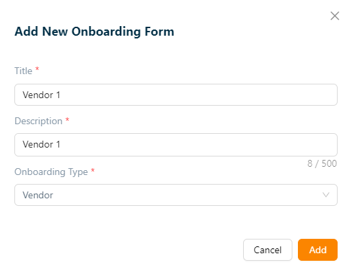 Click New Onboarding Template button to create a new vendor/customer onboarding form if necessary.