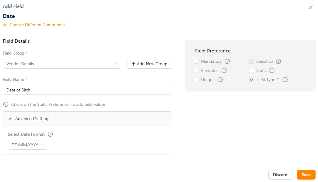 For example: while collecting vendor details, mobile number and email address can be grouped under "Contact Information".