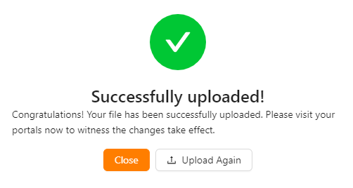 On uploading, the confirmation message appears as shown below.