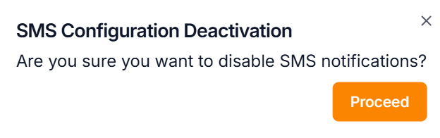 1. Disable the Status toggle button to Deactivate the SMS Configuration.