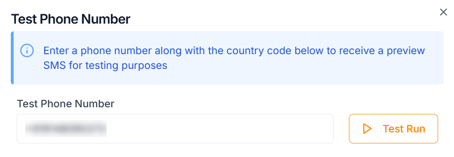 Use the Test Run option to verify the SMS configuration by sending a test message to a valid phone number with the appropriate country code.