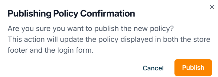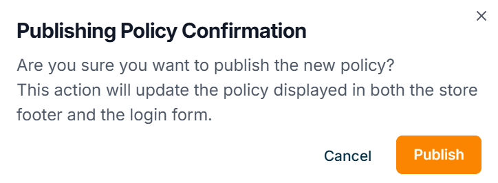 The Publishing Policy Confirmation dialogue box appears as shown below.