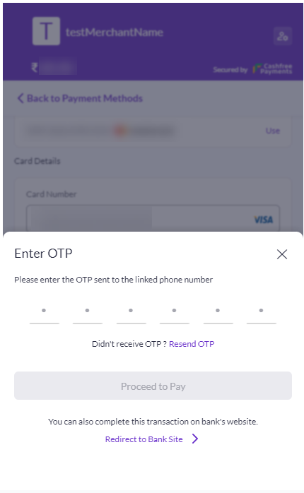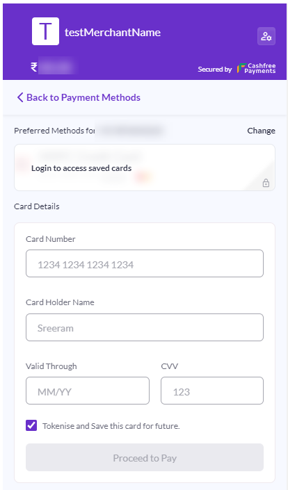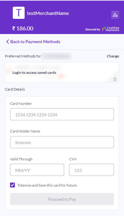 For instance: The steps for processing Cashfree: Card Payment are shown below.