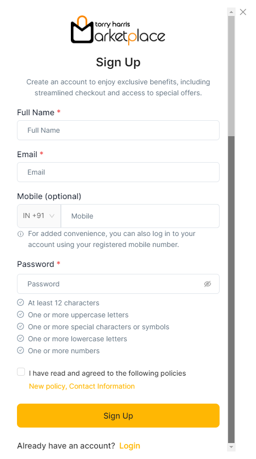 Click the Policies and Contact Information links in the Login screen and footer to view policy and contact information, respectively.