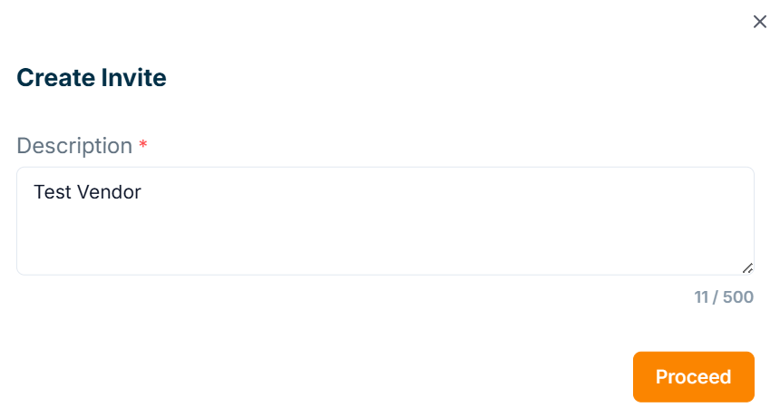 Click Create Invite (URL) button to create an Invite url for approved vendor/customer onboarding form.