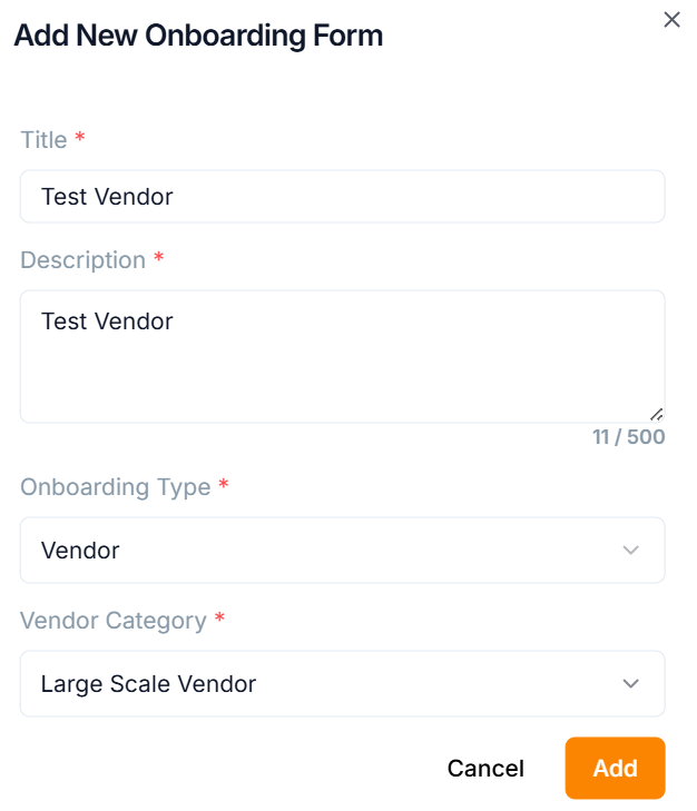 Click New Onboarding Template button to create a new vendor/customer onboarding form if necessary.