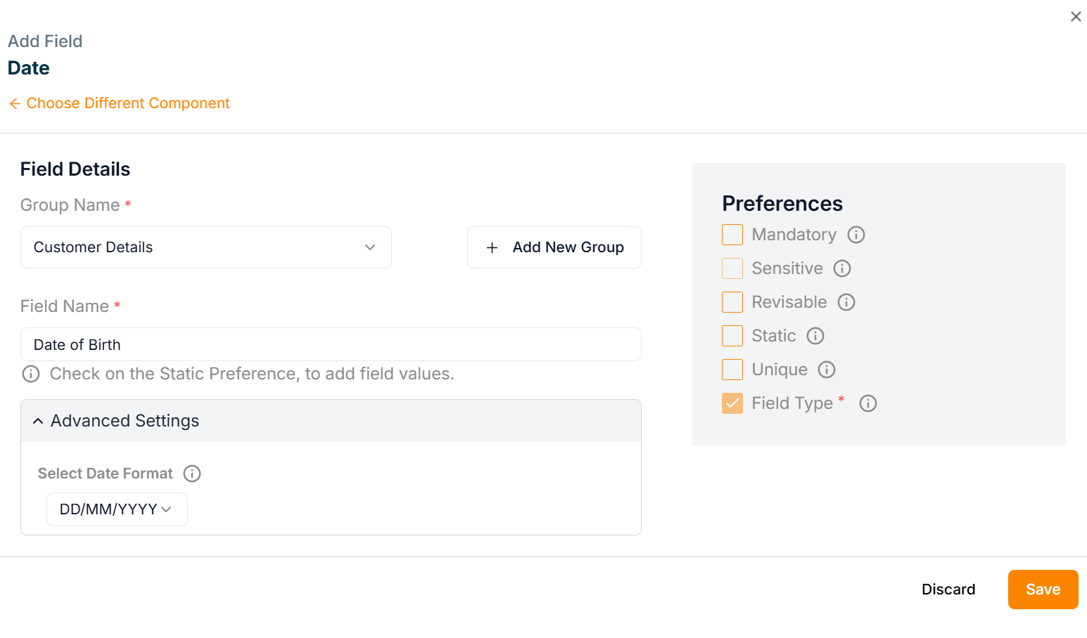 The various Field preference options are given below: