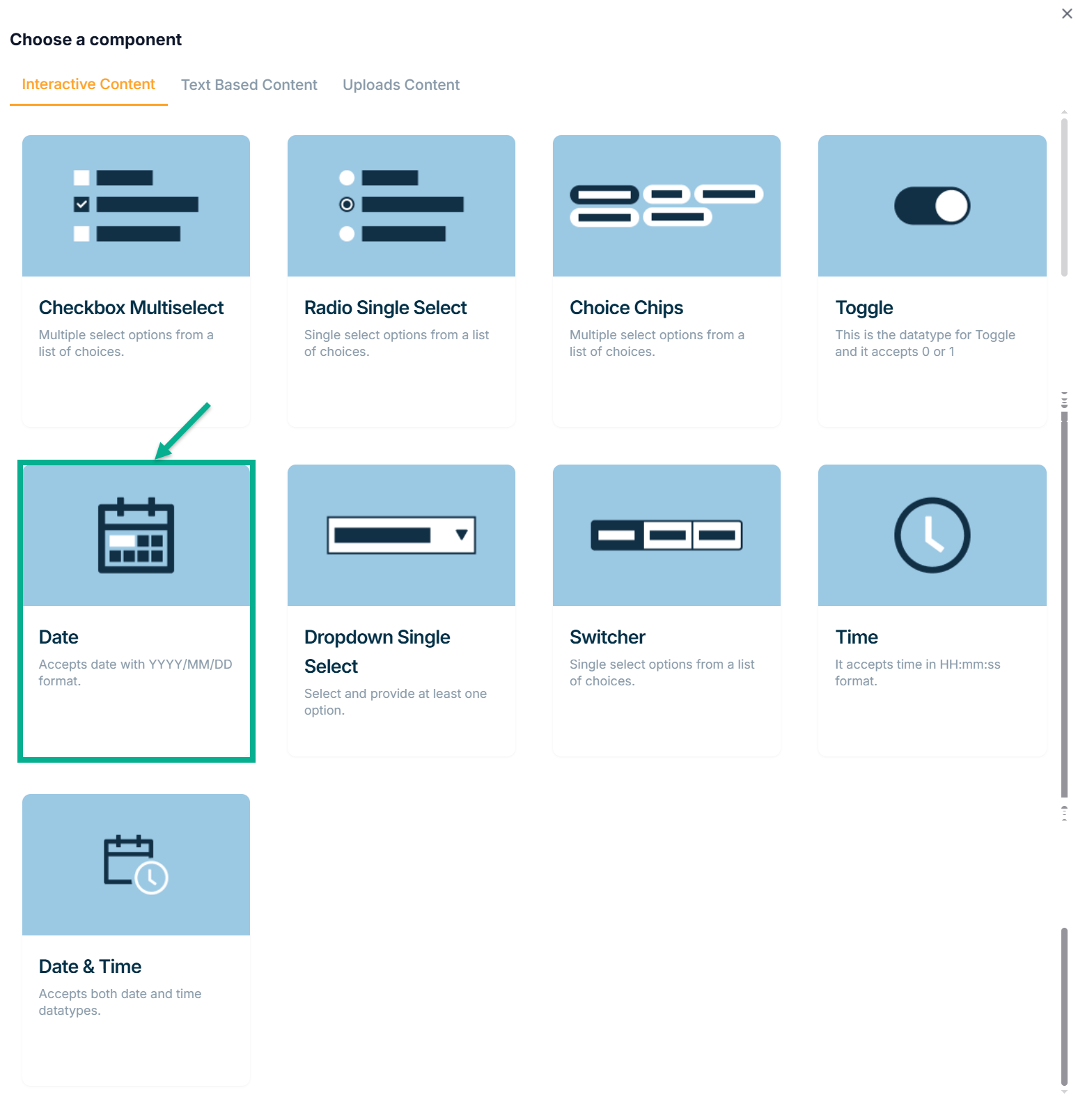 Choose a component dialogue box appears as show below.