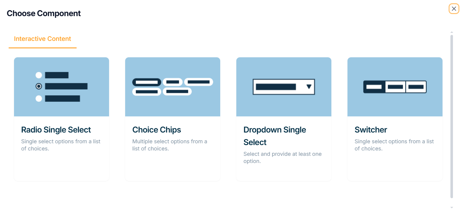 The various Interactive Content types available are: