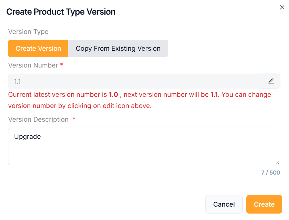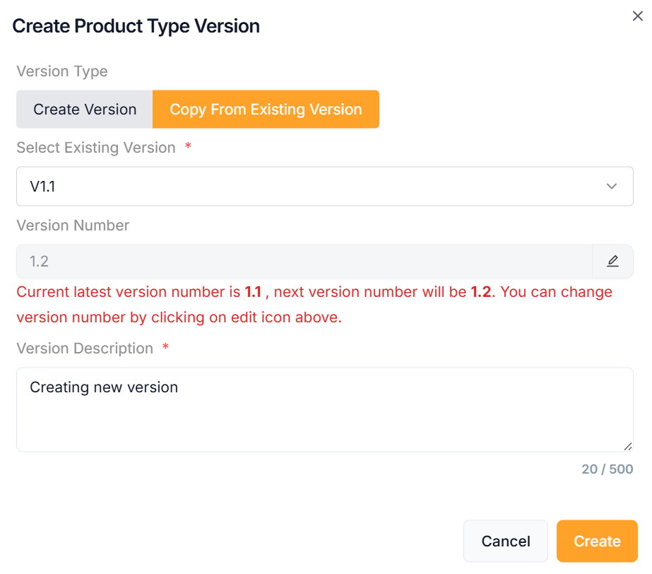 The steps to create a new version are provided below if Version Type is selected as Copy From Existing Version.