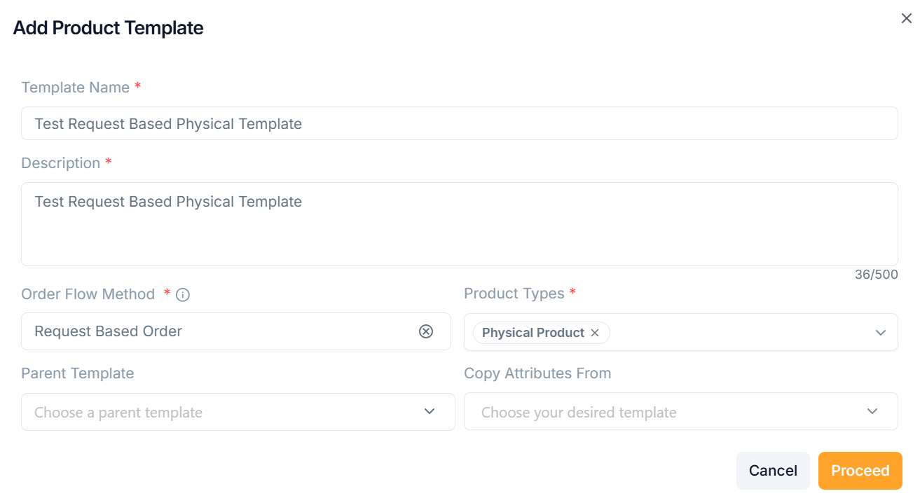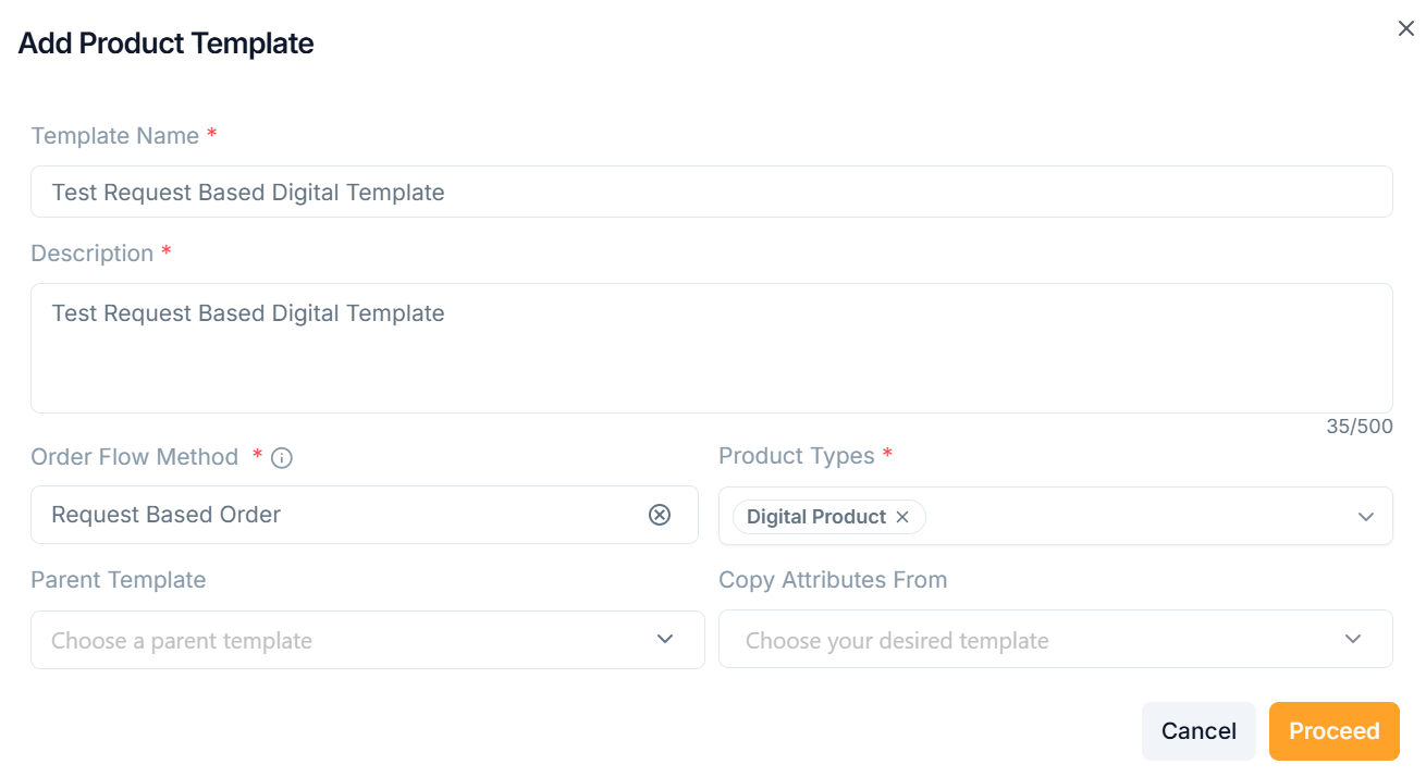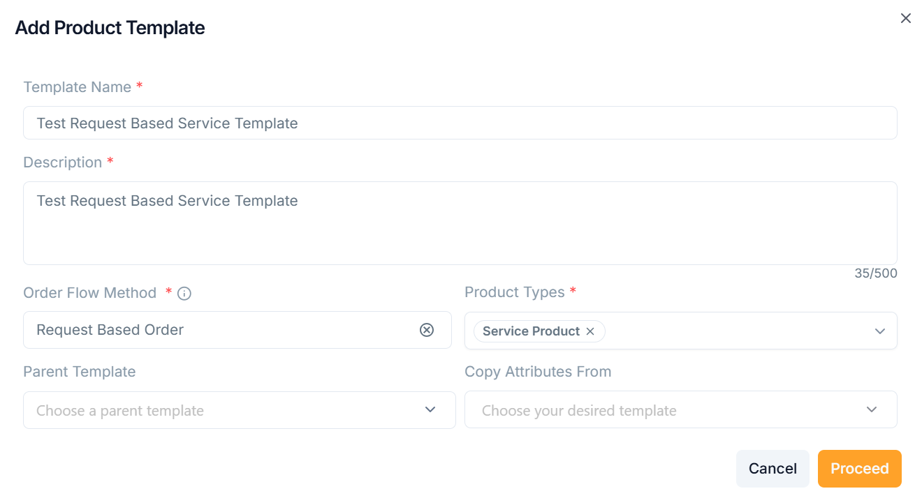 Adding a Request Based Product Template