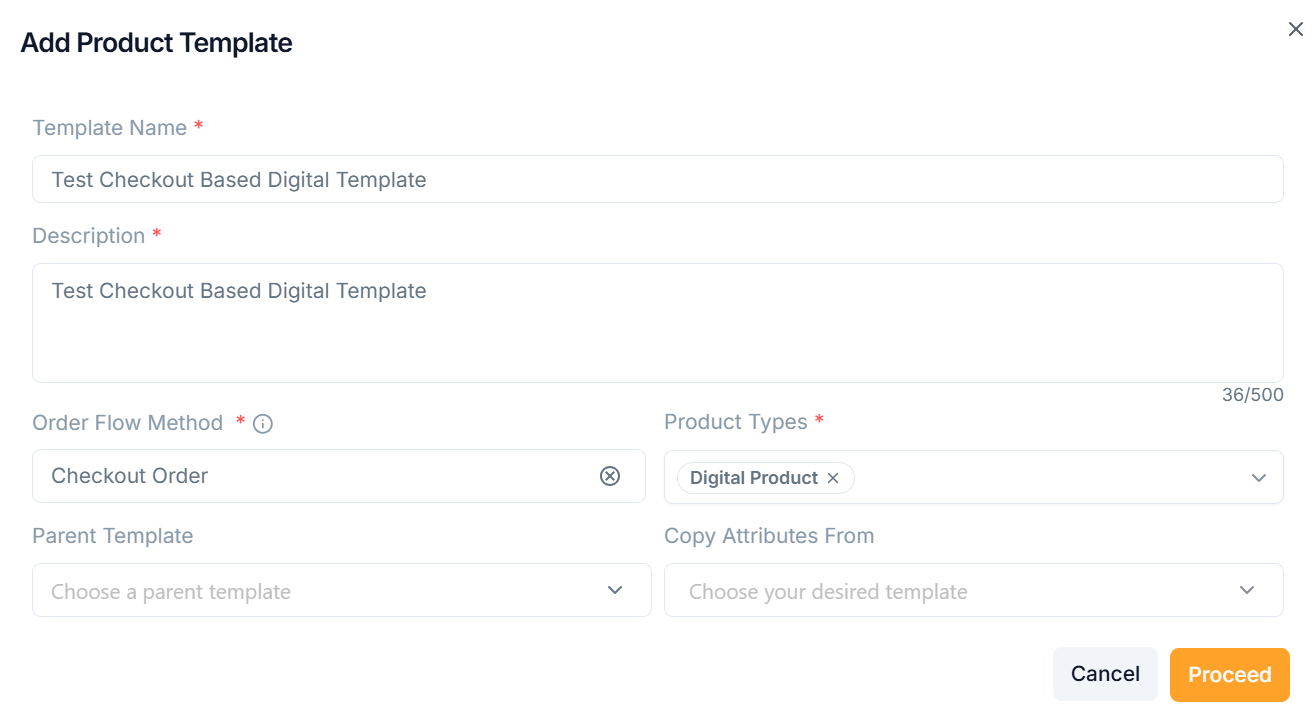 - Click Add Product Template.