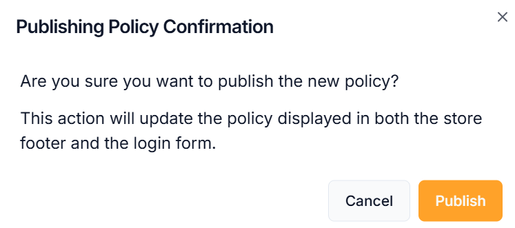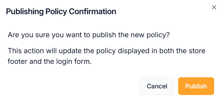 The Publishing Policy Confirmation dialogue box appears as shown below.