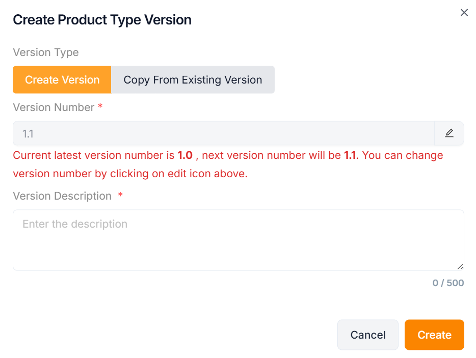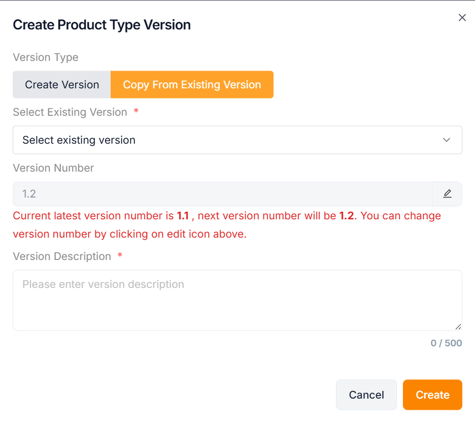 The steps to create a new version are provided below if Version Type is selected as Copy From Existing Version.