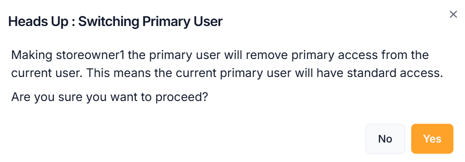Only a primary store owner can make another store owner a primary user and other store owner are unable to upgrade themselves or other users as primary user.