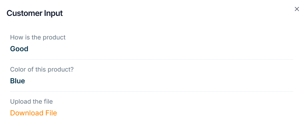Customer Input refers to the request form submitted by the customer as part of the order process.