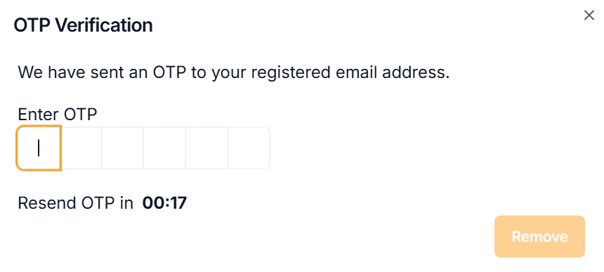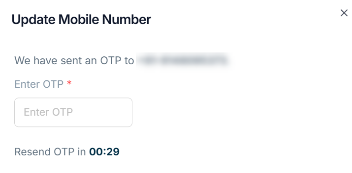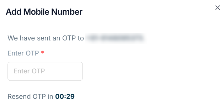 Once the timer completes, the Resend OTP button will appear, allowing the user to request the OTP again.